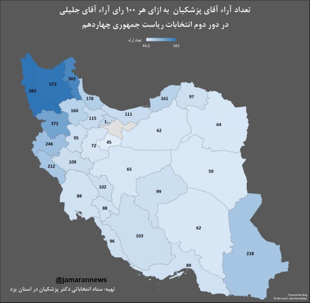 پراکندگی و میزان آرای پزشکیان در دور دوم انتخابات ۱۴۰۳