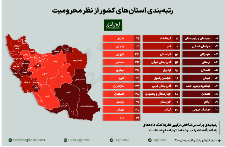 شاید بتوان نقشه رتبه بندی محرومیت استانها را گویاترین بیان ممکن در پیوند شاخص های رفاهی و توسعه ای با نقشه سیاسی پراکندگی آراء مناطق کشور دانست. نقشه و جدول محرومیت حاکی از آن است که بیشترین رای به رئیس جمهور منتخب از مناطق محروم و مرزی بوده است و اگر کرمان، خراسان جنوبی و هرمزگان را نادیده بگیریم، انطباق قابل توجهی بین نقشه محرومیت و نقشه سیاسی پراکندگی آرا در دو دوره انتخابات ریاست جمهوری ۱۴۰۳ وجود دارد.